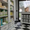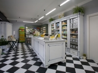 L’intero arredamento è stato quindi realizzato in laccato bianco-nero e curato perché ricordasse gli equilibri, la precisone e l’eleganza di una partita di scacchi. I mobili sono bianchi rifiniti con dettagli neri che ne ripercorrono i bordi, le maniglie sono in ferro anticato e ogni dettaglio ricorda l’arredamento di una erboristeria quasi magica, dove erbe ed aromi possono davvero ridare benessere al corpo e alla mente.